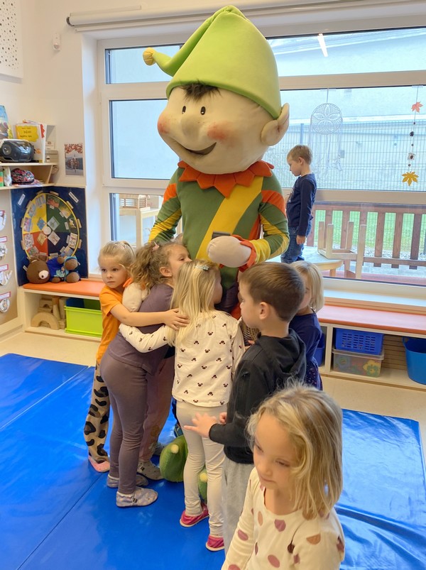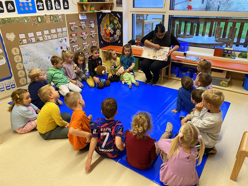 Igralčki z vzgojiteljico Natašo in Heidi.