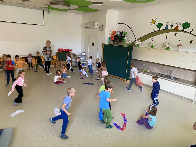 V gozdu smo se igrali z listjem, v igralnici pa ustvarjali jesenska drevesa. Ob sredah nas je obiskovala miška Neli, ki je poskrbela za glasbeno veselje. Telovadili smo, plesali po hodniku in se razveselili obiska škrata Prijateljčka. Obeležili smo tradicionalni slovenski zajtrk, se razveselili snega in prisluhnili knjižničarki Andreji, ki nam je prebrala zgodbo Veliki bučni podvig.