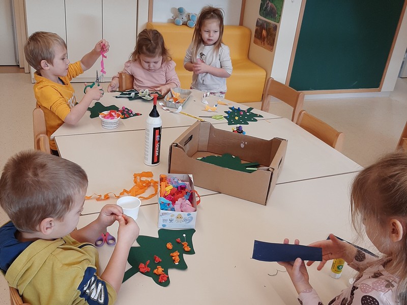 Izdelali smo voščilnice, okrasili smreko in tiskali z odpadnim materialom.