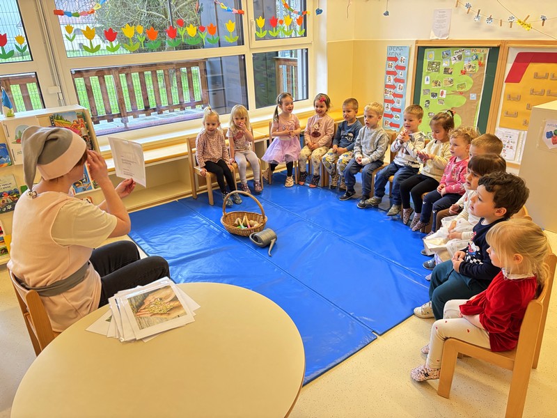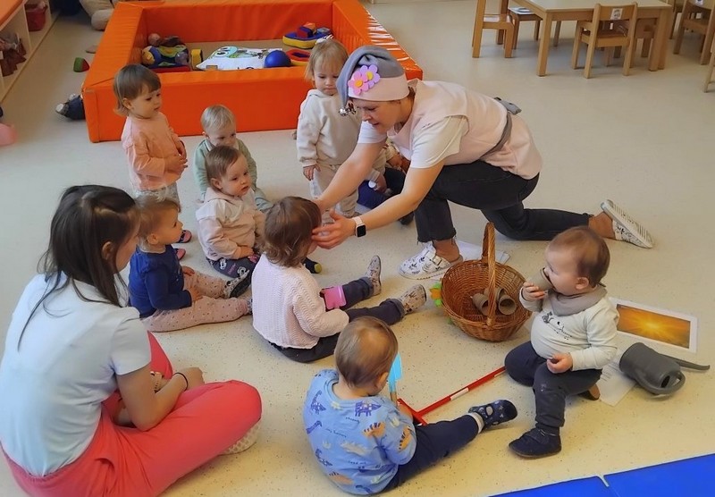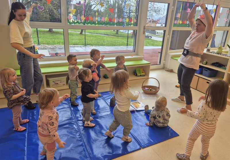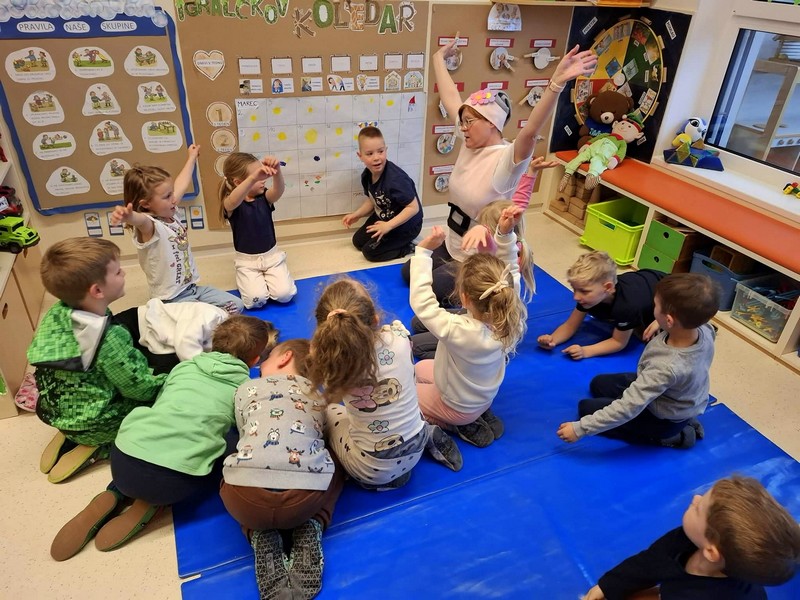 Prihod pomladi so v vrtcu obeležili na prav poseben način. Otroke je po skupinah obiskala pomladna palčica, ki jih je popeljala v domišljijski svet pomladi. S pomočjo gibalne zgodbe so skupaj raziskovali, kako se narava prebuja in kako pomlad počasi prihaja med nas.