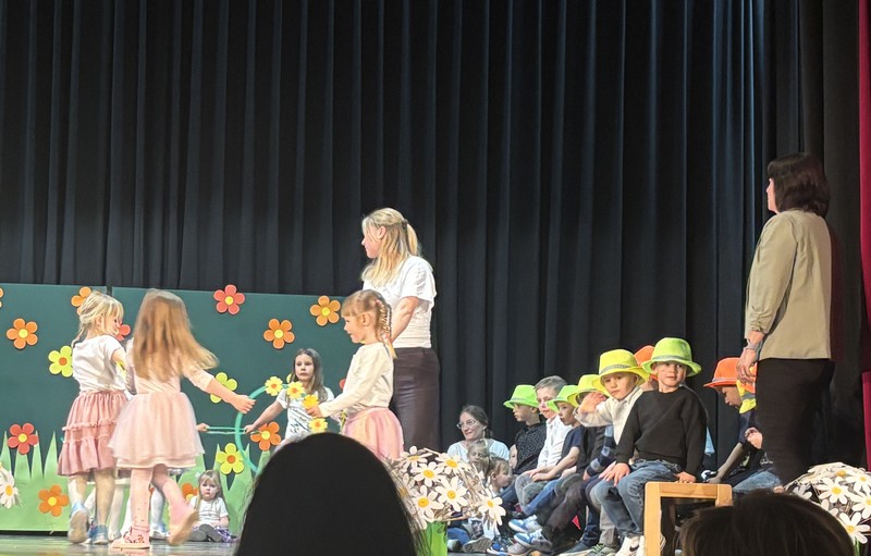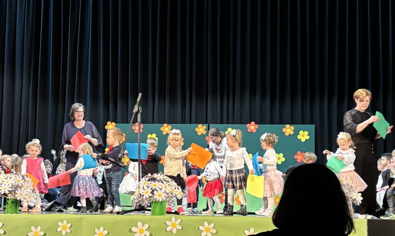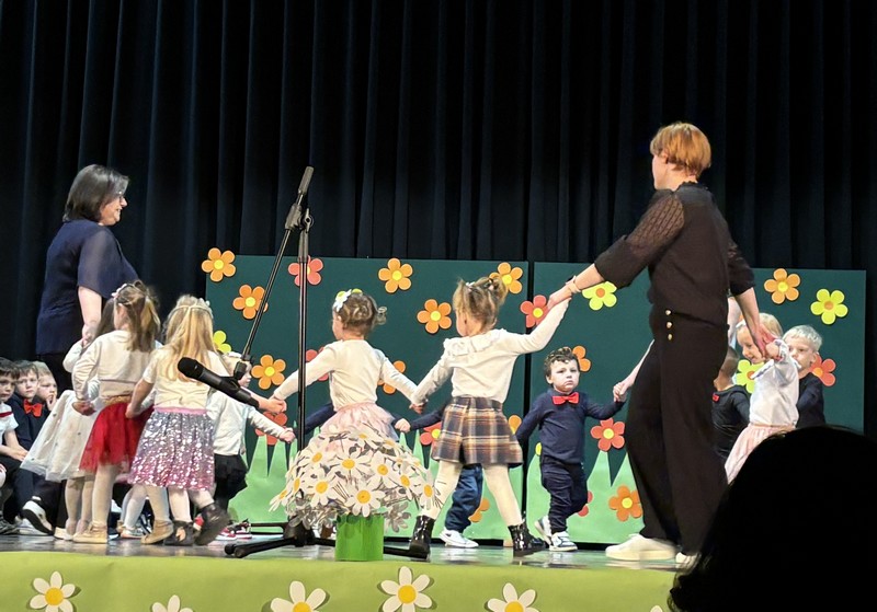 Od najmlajših "Sončkov", ki so s preprostimi gibi očarali vse v dvorani, do »Ringarajčkov«, ki so pogumno zaplesali ob pesmicah o pomladi in tudi vsak s svojim plišastim medvedkom.