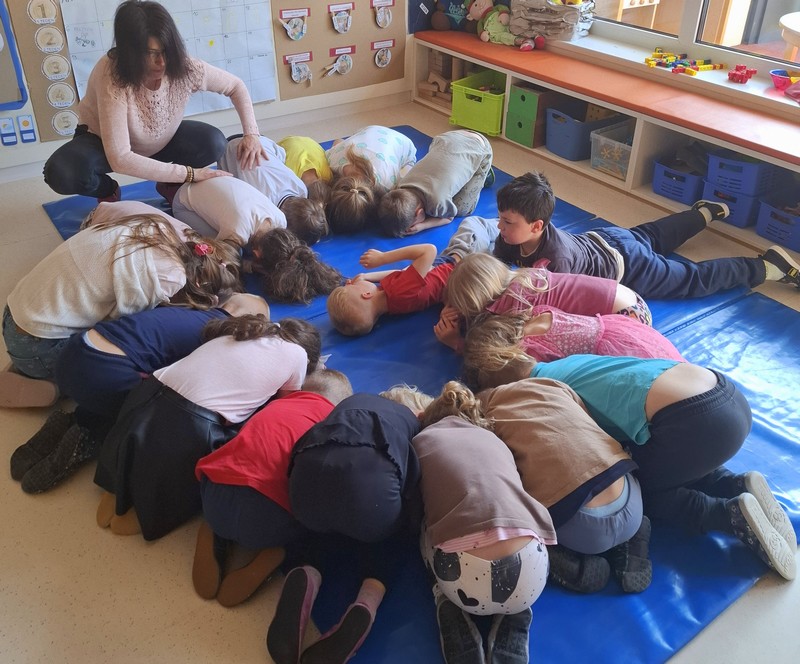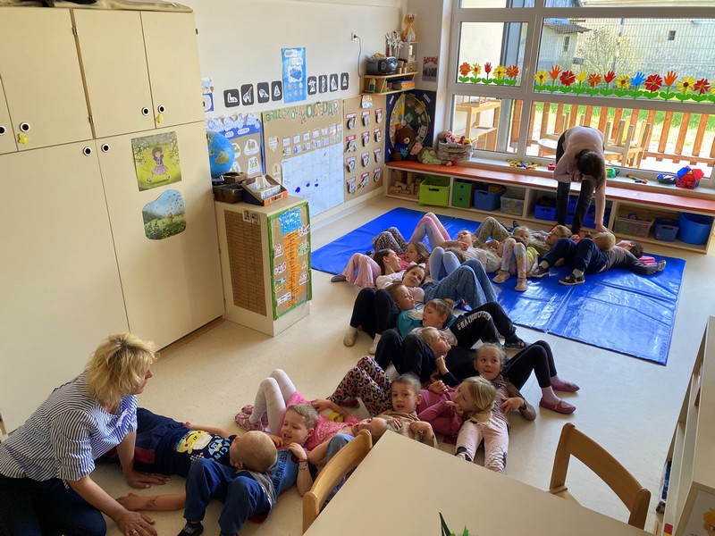 V tem času strokovne delavke izvajamo različne dejavnosti, kot so dihalne in raztezne vaje, kratke vodene vizualizacije, enostavne masaže, poslušanje umirjene glasbe ali zvokov narave. Takšne minutke krepijo otrokovo sposobnost samoregulacije, zmanjšujejo stres ter pripomorejo k boljši koncentraciji in pozitivnemu vzdušju v skupini. Poleg tega spodbujajo občutek varnosti, zaupanja in povezanosti – tako z vrstniki kot s samim seboj.
