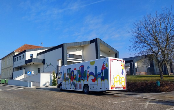 Bibliobus z imenom Bralko je v petek, 2. 2. 2024, postal pred vrtcem Ringaraja v Artičah.