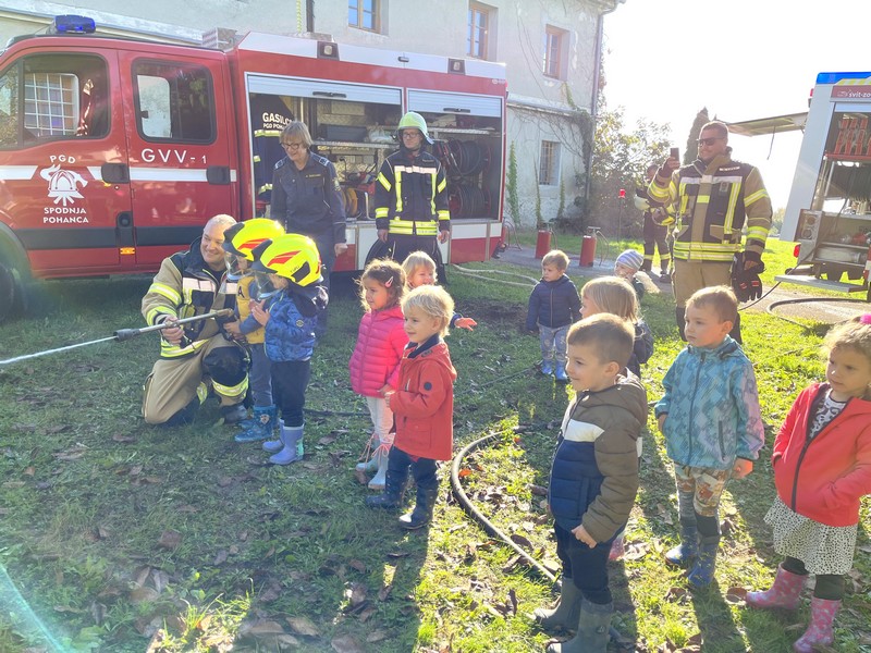 Tudi letos smo medse povabili gasilce. V torek, 15. 10. 2024, smo nestrpno pogledovali na travnato površino pred vrtcem, dokler nismo zaslišali gasilske sirene, ki nas je to dopoldne še večkrat razveselila.