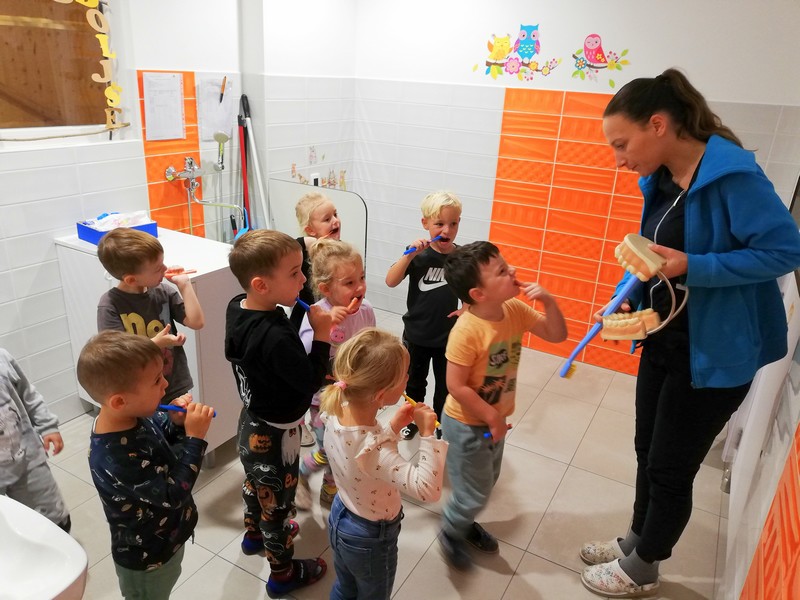 V našem vrtcu so najstarejše otroke iz skupin Navihančki in Igralčki obiskale medicinski sestri Alja in Milka v sklopu projekta Zdravje v vrtcu ter jim na prijeten in poučen način predstavili pomen osebne higiene. S skupnimi aktivnostmi, prilagojenimi starosti otrok, sta sestri otrokom razložili pomembnost rednega umivanja rok in ščetkanja zob.