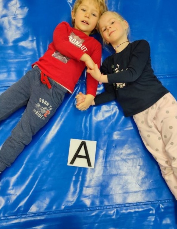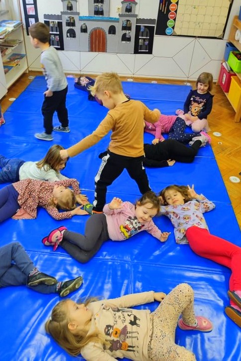 Kadar pa nismo v gozdu, da bi urili spretnosti in se dovolj razmigali, pa imamo vadbene ure v naši telovadnici. Obožujemo igre s padalom, saj nam ponuja veliko igrivosti.