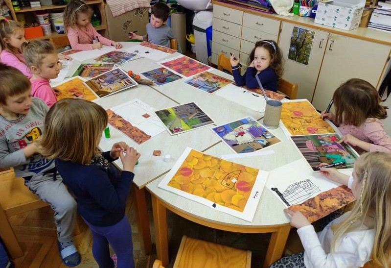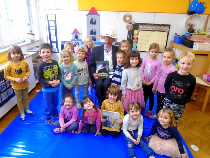 Od tu, pa so nas črke popeljale naprej… Z lastnim telesom smo uprizarjali abecedo, se igrali in ponavljali rime, izštevanke, uganke, slikali našega največjega slovenskega pesnika in ne boste verjeli; obiskal nas je dr. Fig (France Prešeren). Ponosno smo stali ob zvoku Zdravljice in se pogovarjali o njegovi neusojeni ljubezni.