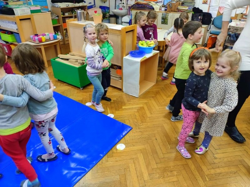 Igrali smo se z lutkami in si izmišljali zgodbice. Večkrat smo se podali v umirjen svet domišljije, a kaj, ko nas naš Val rad poheca in nam na »plesišču« pripravi pravi plesni šov, hehe… In ker tudi ostali zelo radi pojemo in plešemo, nas je po dolgem času obiskal naš glasbeni palček Oskar. Pripravil nam je nove pesmi, nov ljudski ples in vzgojiteljicama naročil, naj za nas izdelata glasbeno tombolo.