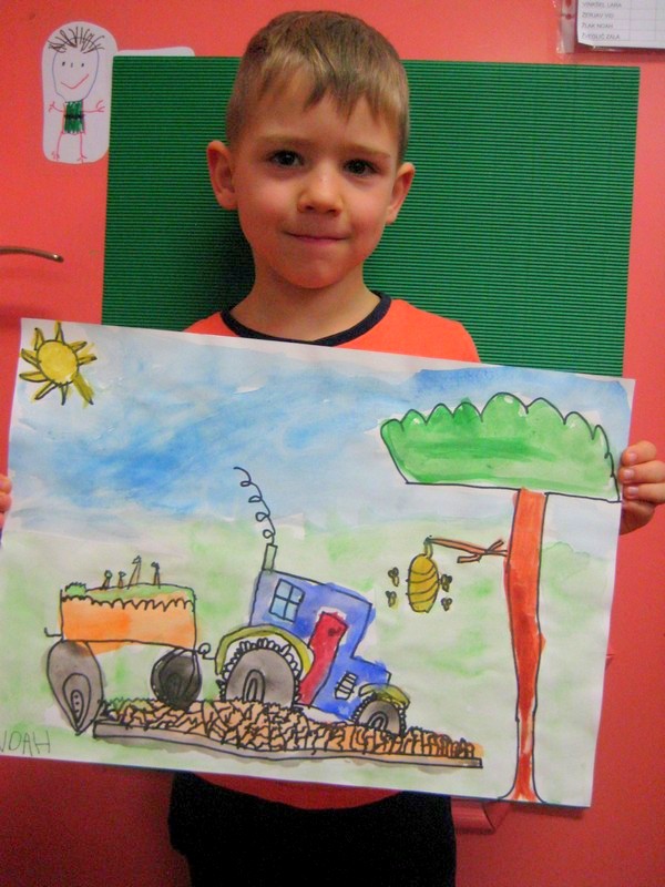 Skupaj smo se veselili nagrade, ki jo je v natečaju »Sadje in zelenjava za zajtrk kombinacija je prava«, za svojo risbico prejel naš Noah.