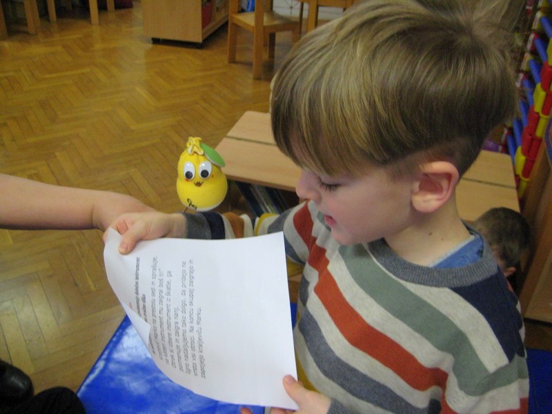 Naša Hruška Debeluška je prava zaspanka. Vsak ponedeljek nam v svoji glasbeni skrinjici pripravi zanimivo dejavnost, a kaj ko je takšna zaspanka, da jo moramo vedno prebujati. Kako? S pesmico seveda. Ker nekateri že znamo brati, sami preberemo kaj piše na njenem listu. Igramo se z ritmi na različne načine, razvijamo slušno pozornost in kraljeviču Marku igramo na željene instrumente.