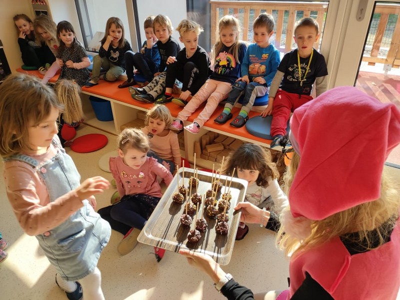 Otroci pa so se še posebej razveselili čokoladnih lizik, ki so nastale izpod pridnih rok naše kuharice Simone. Skupaj s palčkom Ringarajčkom sta posladkala naša neučakana usta...