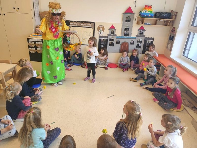 Tako je z nami veselo zaplesala, zapela in nam pomahala v slovo do drugega leta. Mi pa smo ji naročili, naj pozdravi teto Jesen in babico Zimo.