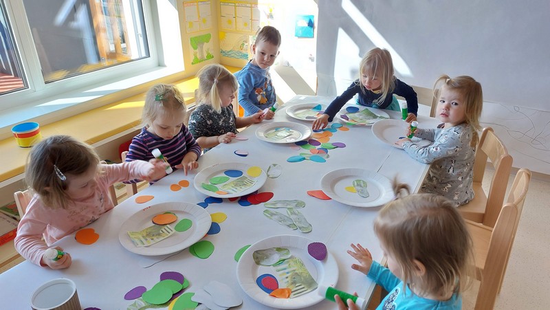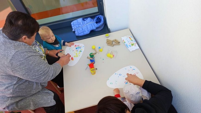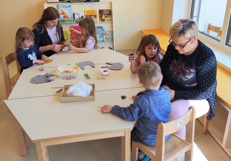 Pod prsti malo starejših vrtičkarjev pa so se prepletale šivanke, sukanec, škarje... in pridne babice ter mamica so vestno pomagale svojim vnukom, vnukinjam, da jim je šlo lažje od rok. Z nastalimi izdelki so si okrasili igralnico, nekaj pa je krasilo tudi njihove domove...