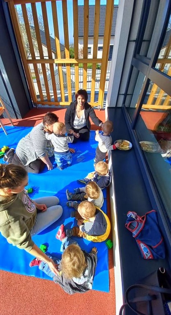 Najmlajši vrtičkarji so se na sončni terasi prepustili barvitemu ustvarjanju in tako so nastali pravi pisani jajčki in pisani pogrinjki...