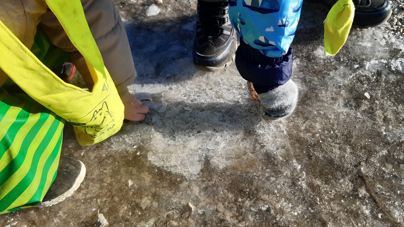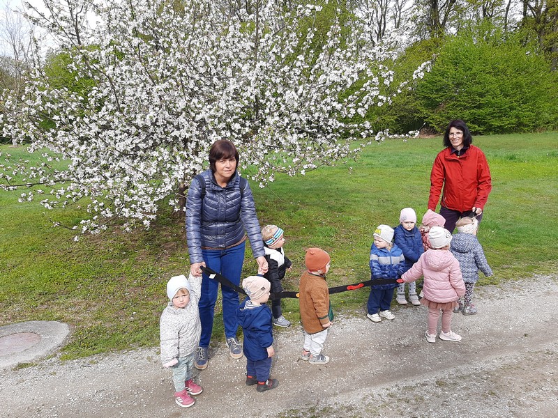 Kolikokrat tedensko se odpravimo v njen objem, odloča vsak tandem sam, na osnovi poznavanja svoje skupine, razvojnih značilnosti otrok, zadanih prednostnih nalog in še česar. Zato najmlajši skupini 1-2 letnikov redkeje kot ostali zapuščajo vrtčevsko igrišče, z otroki od 2 - 6 let pa se v gozd in na travnik običajno odpravimo večkrat tedensko, v vseh letnih časih in neglede na vreme. Pri tem smo hvaležni staršem za podporo in sodelovanje, saj so vsi otroci primerno opremljeni s škornji, dežnimi jaknami in hlačami, kar nam omogoča svobodno raziskovanje, igro in učenje.