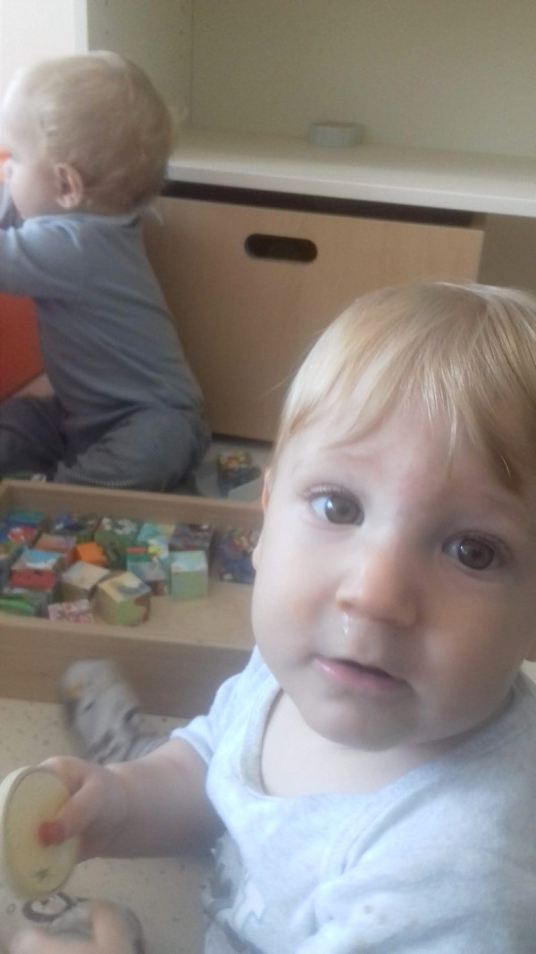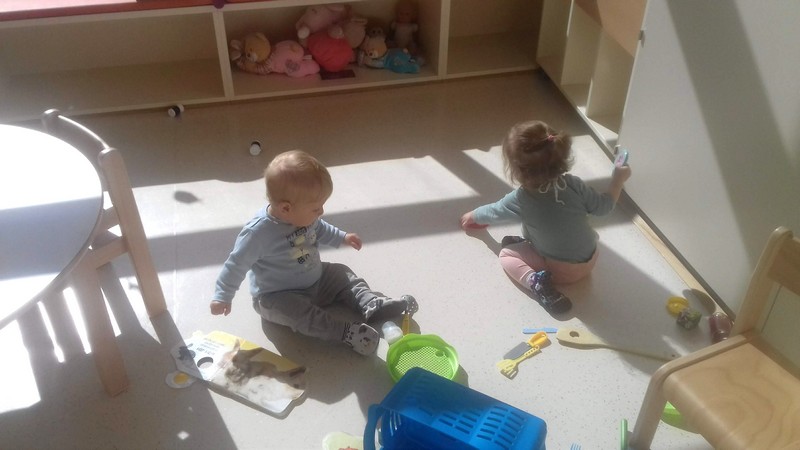 Pogumno smo pripeljali svoje atije in mamice v naš drugi domek - igralnico v vrtcu Ringa raja, ter jih po nekaj dnevih uvajanja poslali v službo, domov pospravljat, kuhat in vse ostalo, kar pač odrasli počnete, mi pa smo ostali pri novih "tetah", kjer nam je prav fino. Res da je vsak nov začetek precej težek, a mi smo sedaj že usklajena druščina!