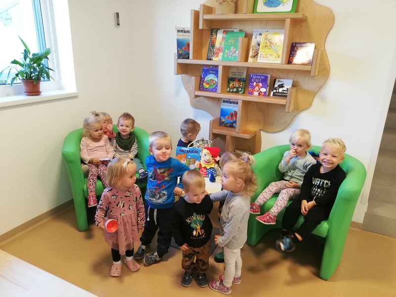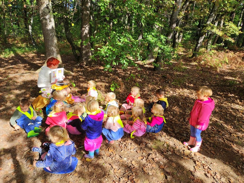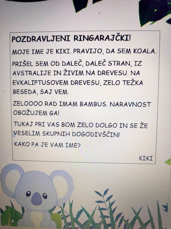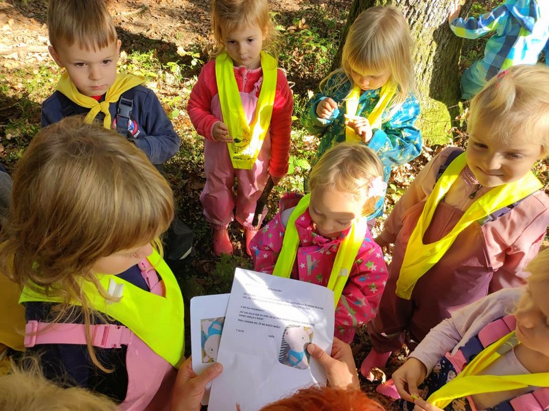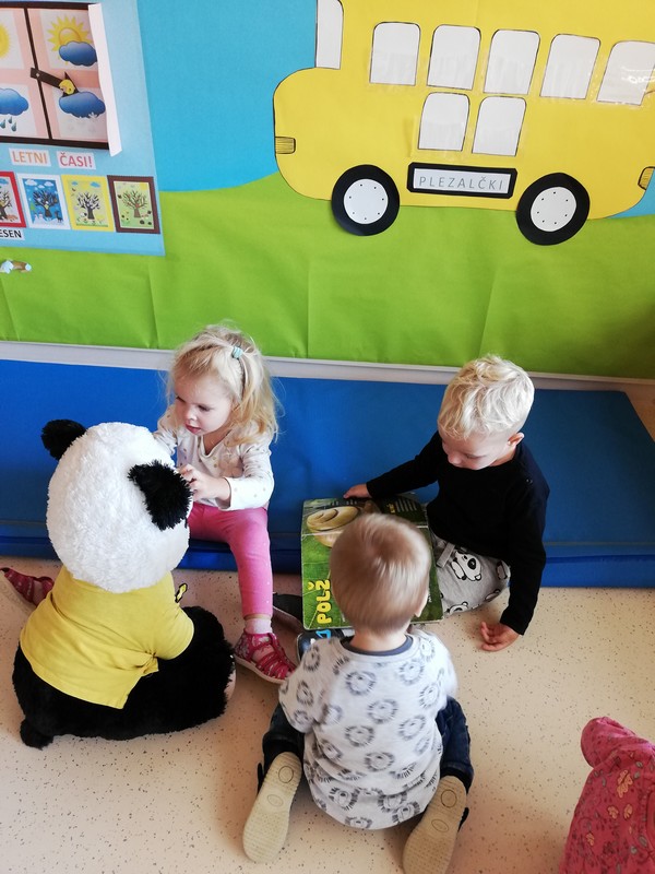 Otroke iz skupine Plezalčkov pa je obiskala medvedka Panda, ki jim bo krajšala dneve, ko ne bojo v vrtcu, pod pravljičnim drevesom so poslušali pravljico, kjer jih je tudi pričakal palček Bralček, igrali so se z lutkami in uživali v raziskovanju gozda.