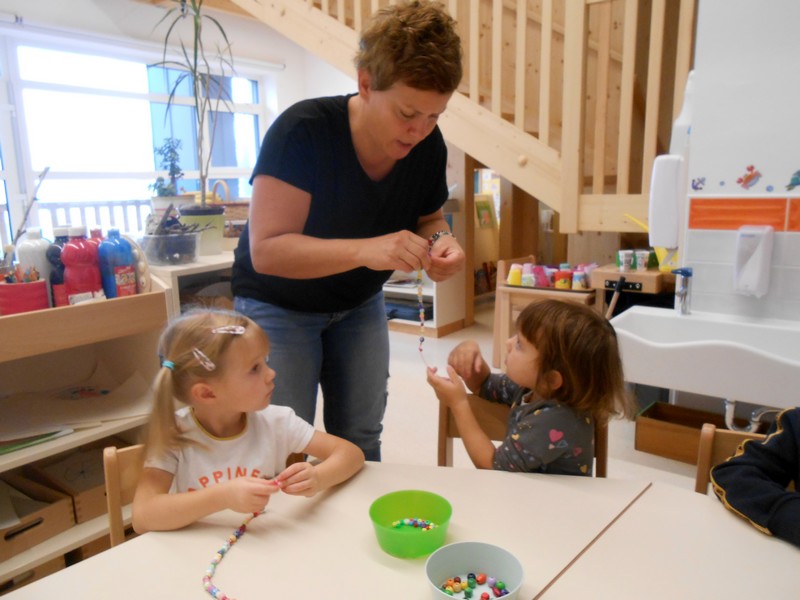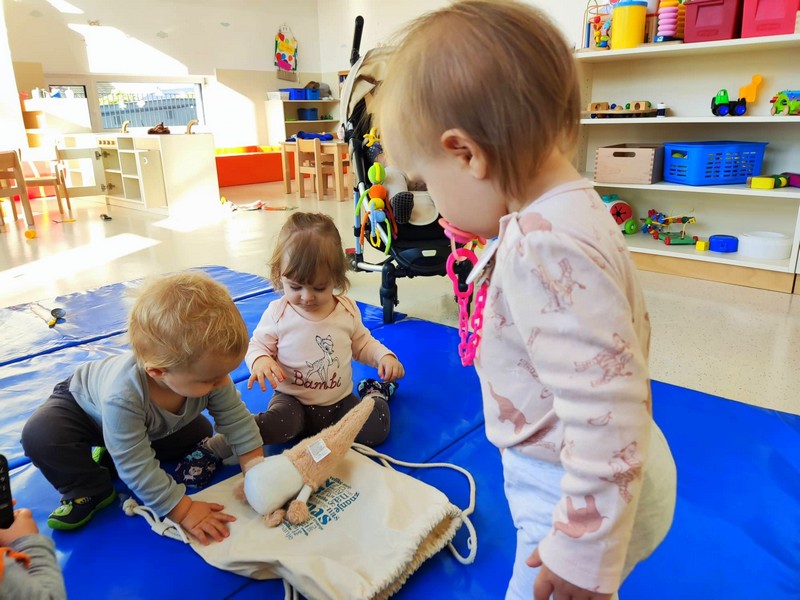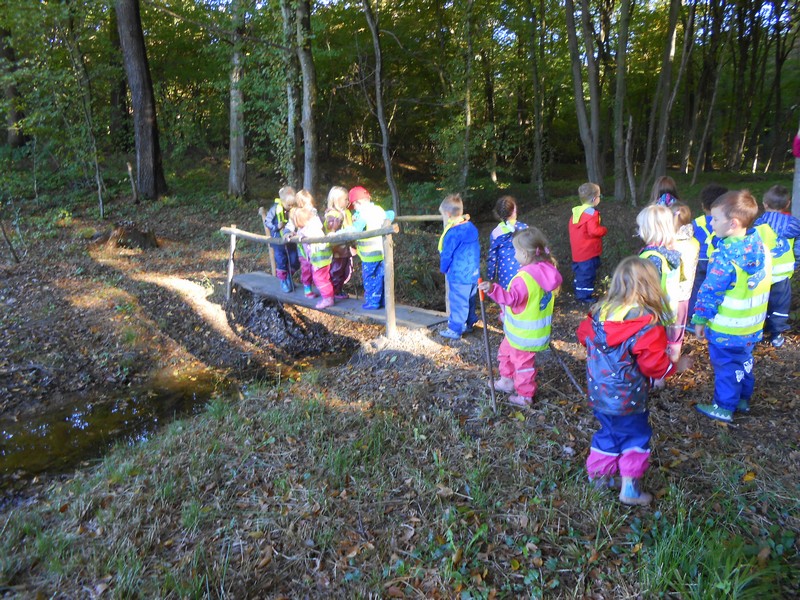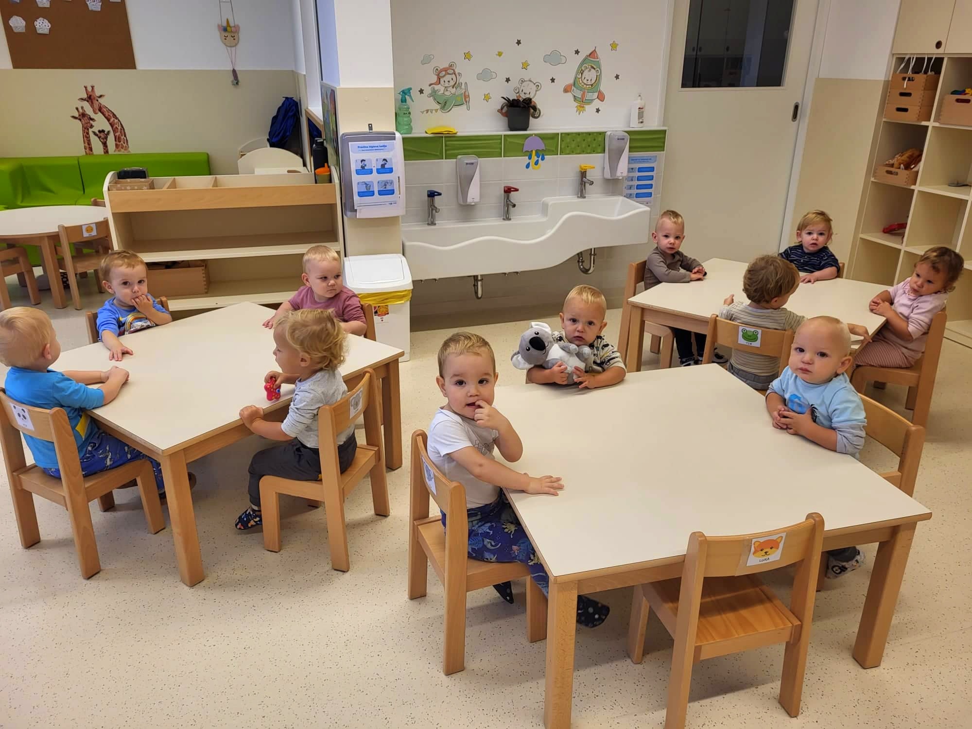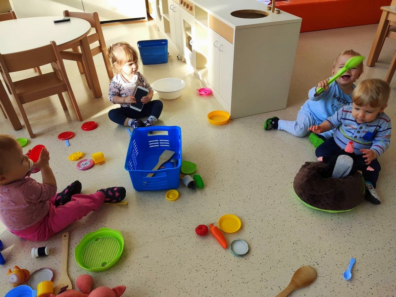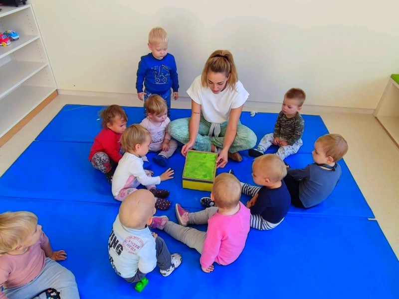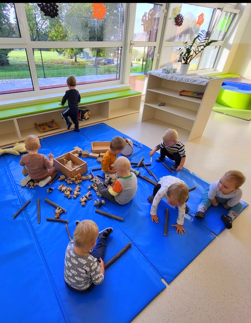 Ringarajčkom je maskota skupine, po imenu Kiki s pomočjo čarobne vreče, v igralnici pričarala jesen. Zelena igralnica je postala polna jesenskih čudovitih odtenkov. Z listi so se igrali, jih lepili na folijo, trgali in skupaj pospravljali nered. Igrali so se s palicami, vozili, magneti, ustvarjali s prstnimi barvami, a veliko časa preživeli prav zunaj. Iz čarobne skrinjice pa je prikukal ježek, po imenu Bežek, ki jih je naučil prvo kitico pesmi - Živali jeseni (M. Voglar). Odpravili so se tudi v gozd, kjer so raziskovali in uživali v zvokih narave.