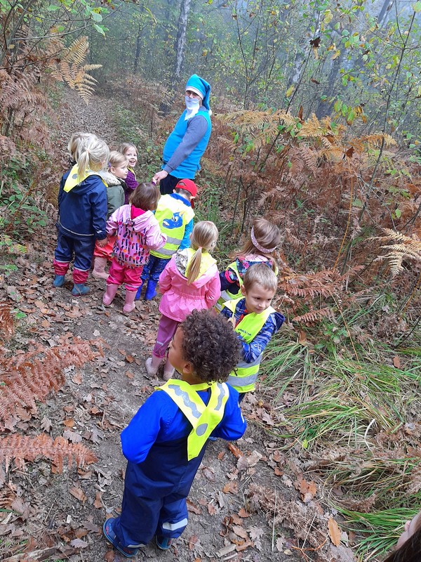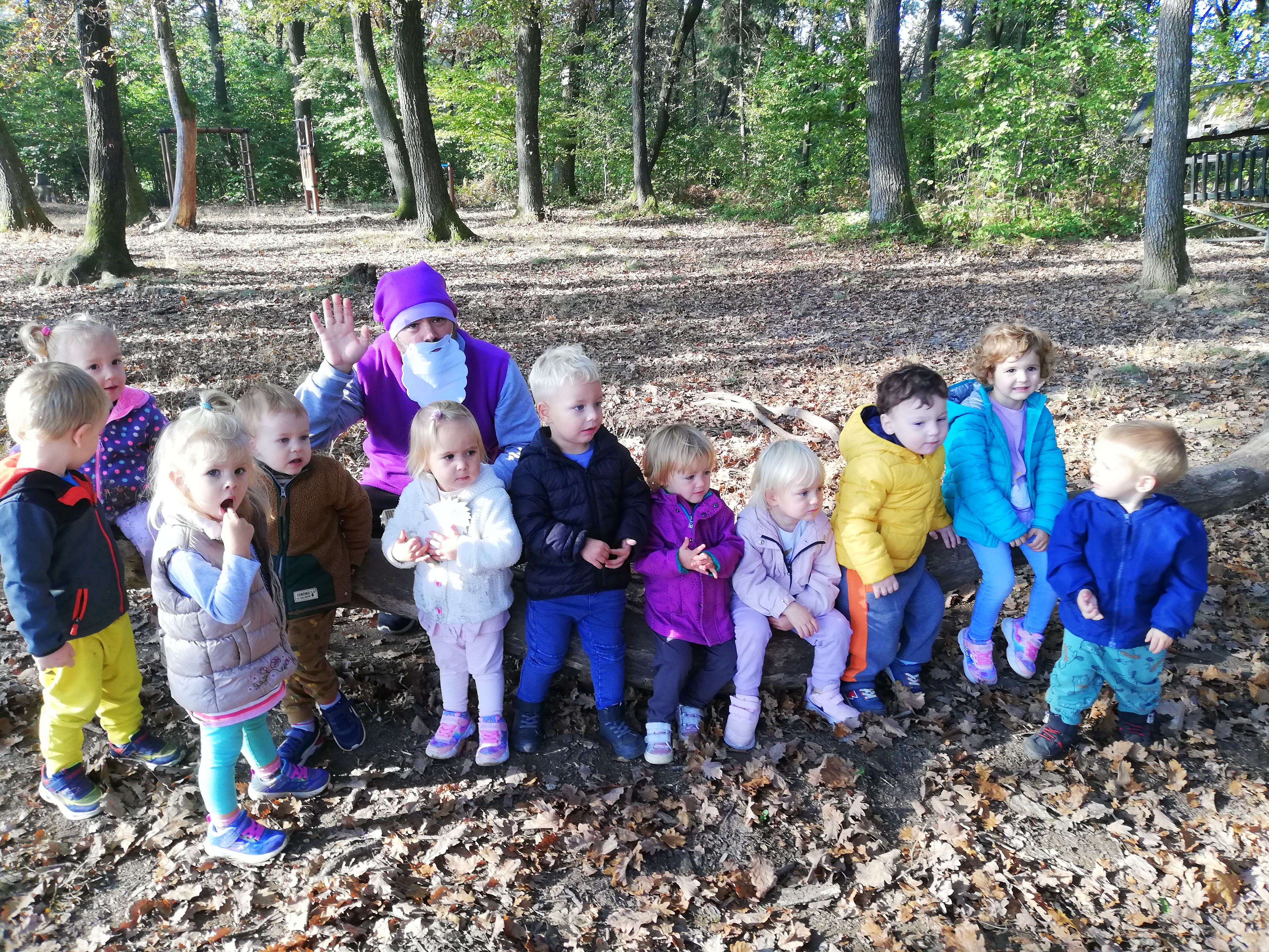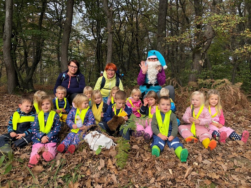 Če nas je botra Jesen prišla obiskat v vrtec, smo pa v našem Banovem gozdu srečali palčke. A veste kako so bili sramežljivi? Ja, že skoraj eno leto se nismo srečali, pa čeprav se vsakodnevno hodimo igrat v gozd. Ko so nas prepoznali, pa smo skupaj ugibali uganke, prepevali o ježku, veverički, medvedu,... odšli na pohod po skrivnostnih poteh Banovega gozda, poslušali ptičje petje, opazovali ples listkov in tudi sami zaplesali s palčki. Dogovorili smo se, da bomo pridni obiskovalci gozda še naprej in da gob ne bomo brcali in trgali, saj nikoli ne vemo, če se pod njo skriva kakšen majhen gozdni palček.