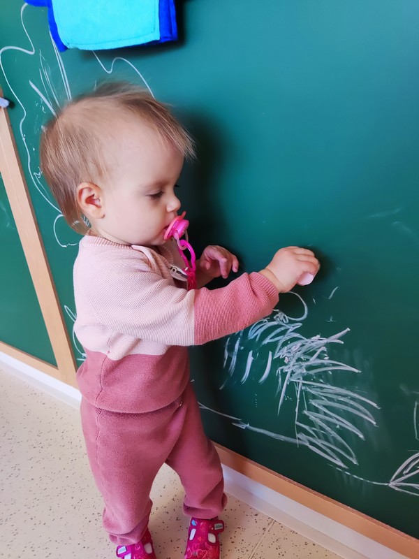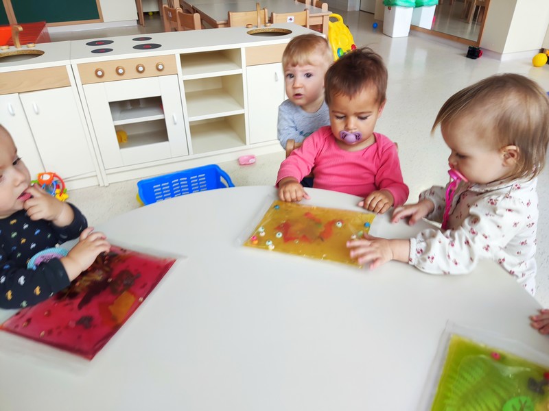 Veliko prenašajo igrače iz ene strani igralnice na drugo, se igrajo s senzornimi vrečkami, zelo uživajo v igri z žogami, podirajo stolpe, kuhajo, najraje od vsega pa jedo. Počistijo krožnike do zadnje drobtine in med jedjo glasno godejo od zadovoljstva.