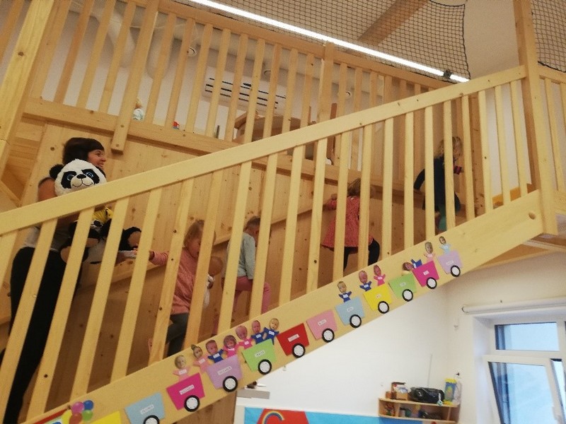 Ker v vrtcu otroci tudi spimo, smo pandi uredili novo ležišče. Prosili smo atija Boštjana, da je naredil tole leseno posteljo. Hmmm, ponavadi je polno zasedena, saj deklice uživajo v igri na njej.