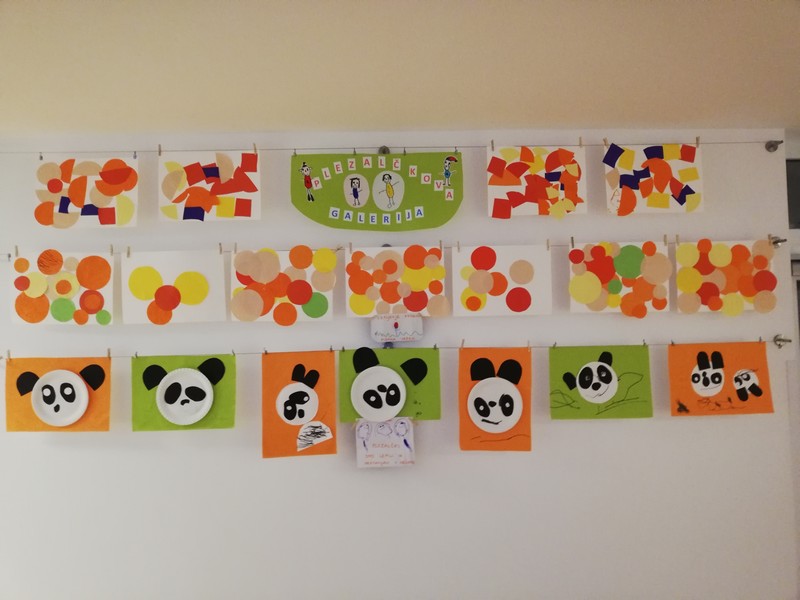 Na koncu pa z vami delimo tudi našo likovno galerijo. In seveda poleg jesenskih barv v lepljenki, je prinesla tudi prikupne pande, ki navihano krasijo našo steno.