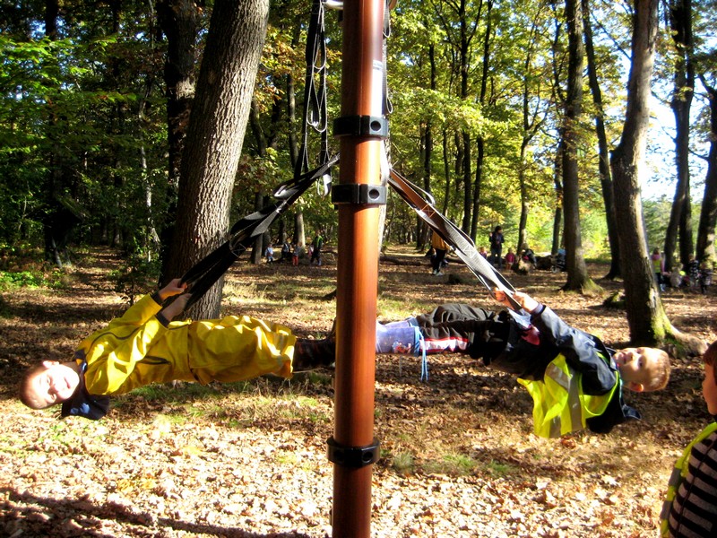 V gozdu se poleg igre tudi spontano učimo … utrjujemo barve, štejemo, primerjamo, merimo dolžine palic ... skuhamo kakšno gozdno enolončnico za škratke in jim naredimo jesenske pogrinjke ter urimo svoje gibalne sposobnosti.