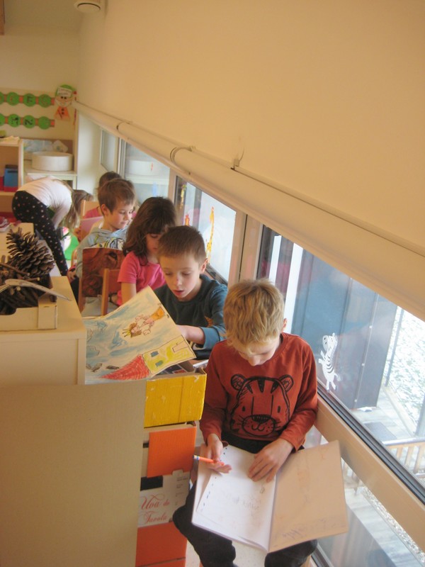 Zanimajo nas tudi črke, ki jih preslikujemo, sestavljamo imena, ugotavljamo začetne glasove, iščemo besede (dolge/sladke/kisle/smešne/gozdne,…), se pogovarjamo o imenih družinskih članov. Ob sredah z veseljem prisluhnemo našemu Ringarajčku Bralčku, ki nas vsakič navduši z novo, zanimivo zgodbo. V pogovoru in opisovanju dogodkov se trudimo uporabljati cele stavke, govoriti glasno in razločno.