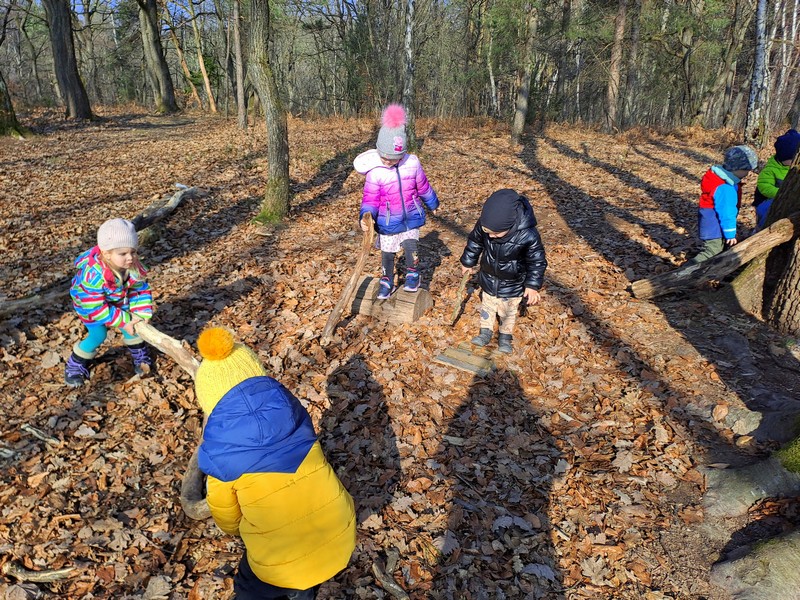 Torej gozd nam ponuja veliko različnega materiala za ustvarjanje in igro. Prostor jim že sam po sebi nudi spodbudno učno okolje, kjer razvijajo svojo domišljijo.