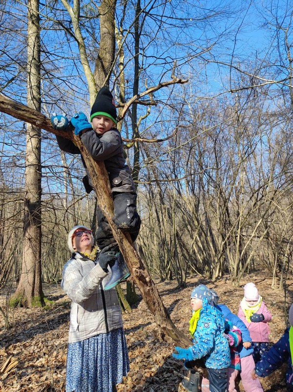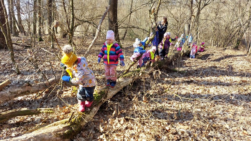 Narava, predvsem gozd, otrokom nudi mnogo različnih senzoričnih izkušenj, ki jih nikjer drugje ne morejo doživeti v taki polnosti. Zemlja je bila trda, a pri potoku, kamor radi hodimo, že razmočena, potok je v tekočem stanju, a smo ga uspeli videti tudi v trdem stanju, ko je nastal led. Tipali smo mah, odkrivali trdoto lubja različnih dreves, hodili po odpadlih listih in po tleh rastočem bršljanu.