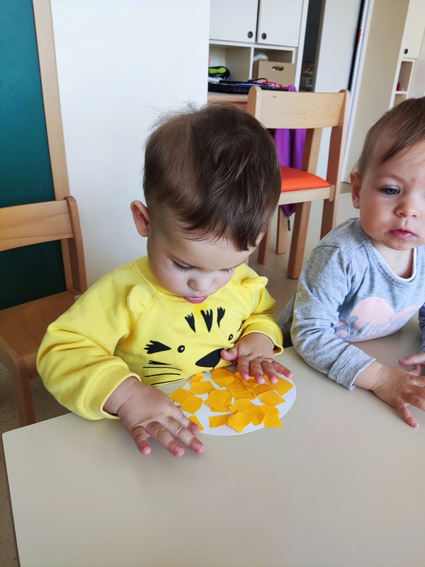 Na začetku meseca smo v vrtec povabili mamice in babice, ki so nam pomagale ustvarjati velikonočno dekoracijo. Ustvarjali smo piščančke. Na tršo podlago smo nanesli lepilo, otroci pa so lepili koščke rumenega papirja na podlago. Ko so zaključili z lepljenjem, so prilepili še kljun, čopko, noge ter oči in nastal je piščanec.