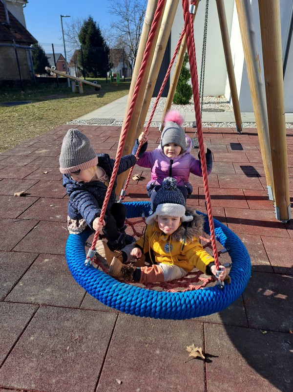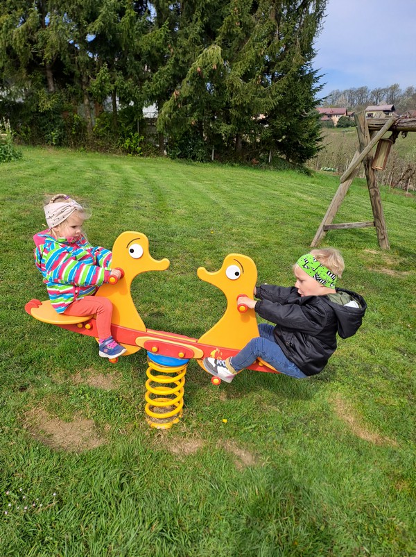 Zelo smo veseli in ponosni, ker imamo zelo veliko in bogato opremljeno vrtčevsko igrišče. To je prostor, kjer otroci sproščujoče, varno in brezskrbno uživajo v plezanju, skakanju, igrah v mivki, guganju, lovljenju, skrivanju, vožnji s kolesi in poganjalčki, igrami z žogo ter še mnogo drugih zanimivih stvari. Igrala so namenjena statičnim igram, kot tudi igram, ki zahtevajo obvladovanje ravnotežja, premagovanje višin, preskušanje moči in gibčnosti ter soočanje s hitrostjo in vrtenjem.