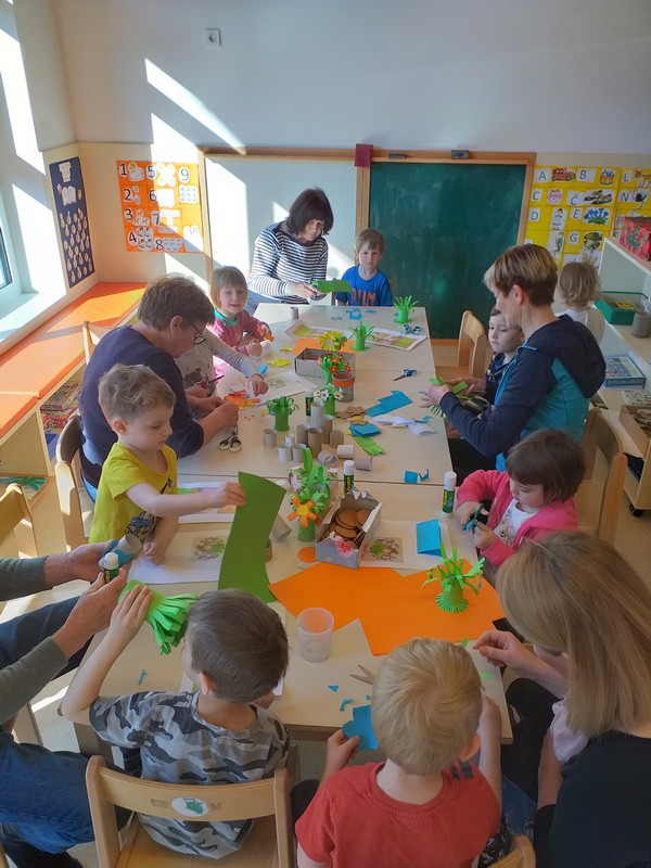 V začetku meseca aprila smo se pripravljali na velikonočne praznike. Medse smo povabili mamice, babice in dedke, ki so nam pomagali pri izdelavi zajčkov iz blaga ter papirnatih košaric in rožic.