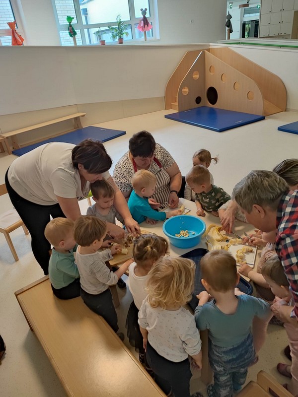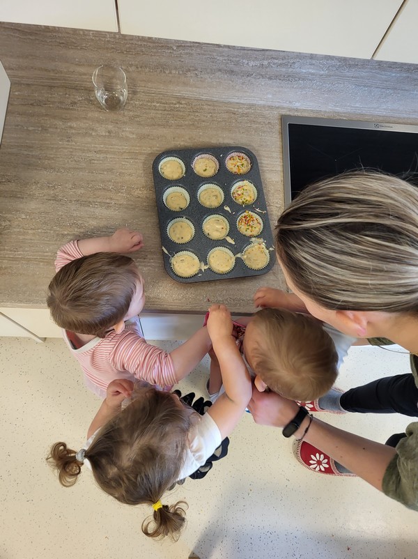 Ena izmed priljubljenih dejavnosti med medgeneracijskim druženjem v vrtcu je zagotovo ustvarjanje v kuhinji. Glede na to, da je naš vrtec praznoval 50. rojstni dan, smo se odločili vrtcu speči majhne tortice (muffine). S peko smo spodbudili ustvarjalnost, kreativnost, spoznali smo različne sestavine, pripomočke, naučili smo se osnove peke, prav tako pa smo spodbujali sodelovanje in timsko delo. Doživeli smo nepozabne trenutke, saj smo si delili smeh in zabavo, nato pa smo se skupaj tudi posladkali.