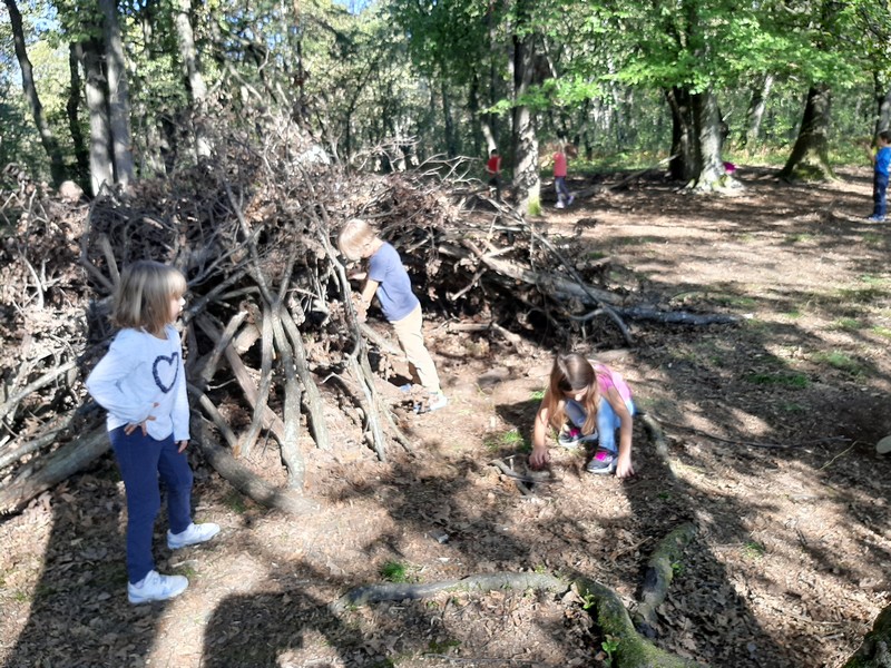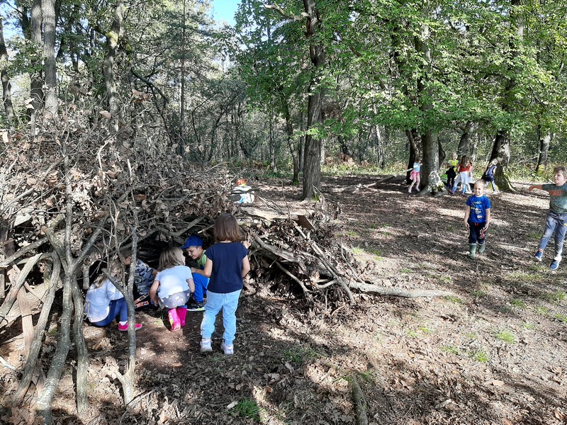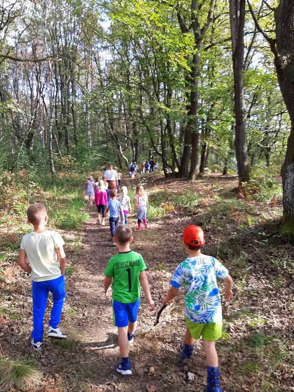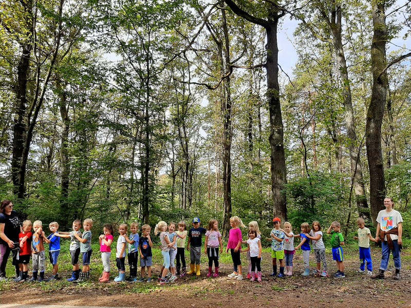 V Smaragdnem delu gozda so otroci veselo plezali, skakali, raziskovali rastlinje, živali in opazovali naravo okoli sebe. Gozd nas vedno popelje v tišino, zelenilo in nas navda s čudenjem.