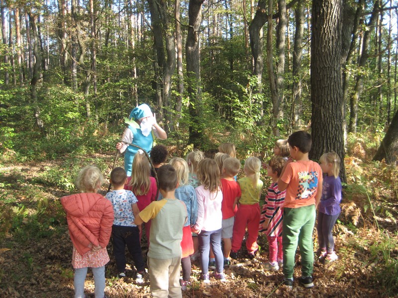 Vse to je prišlo na ušesa gozdnemu škratu, ki se je samo za nas pripeljal z avtobusom v Banovo hosto, kjer smo se srečali. Navdušen je bil nad brlogom, ki smo ga zgradili za medvedka Brunda, zato se je odločil, da njegov prijatelj škrat Želodko ostane pri nas v tem šolskem letu in otroke med vikendi obiskuje na domu, čez teden pa se z nami potepa po gozdu.