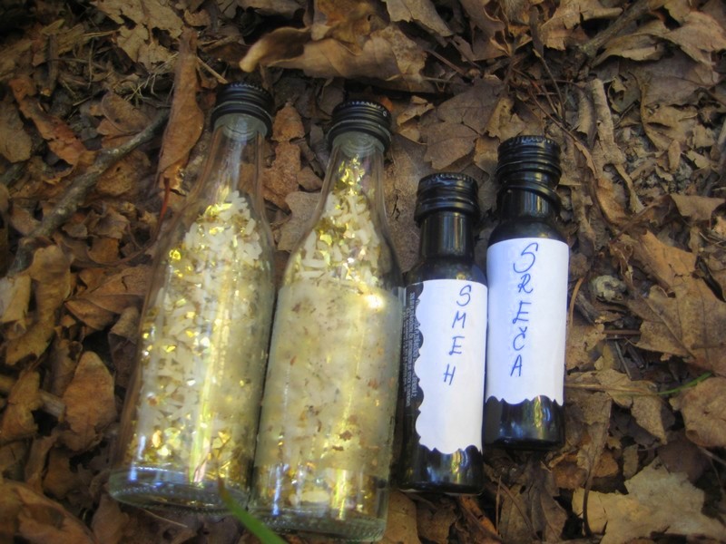 ... tokrat smo si morali izdelati GOZDNE LUČKE in z njihovo pomočjo poiskati prav posebne stekleničke…LJUBEZEN, NASMEH, SREČA, PRIJATELJSTVO, PRIJAZNOST…vse skupaj zmešati s peresom zlate goske v steklenem kelihu in izreči čarobne besede…ČIRA- ČARA, HOKUS- POKUS, GOZDNE VILE IN ŠKRATI, PRAVA ČAROVNIJA JE PRED GOZDNIMI VRATI! NAJ ČAROVNIJA ZDAJ DELUJE, ČAROBNI PRAŠEK NAS POSUJE.