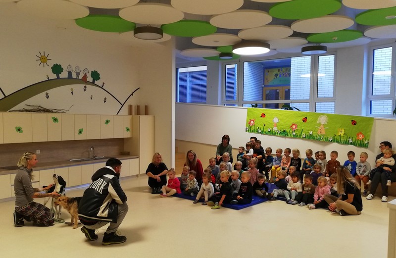 Prijazna kužka sta nadela nasmehe na otroške obraze, prikazala nekaj pasjih trikov, se pustila čohljati in zasluženo požela močan aplavz.