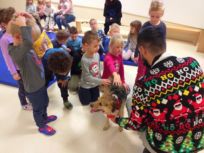 Za začetek meseca, pravljičnega decembra, kot mu radi pravimo, nas je obiskalo društvo Ambasadorji nasmeha iz pasje šole Po Pasje...