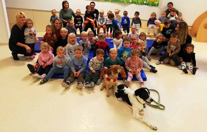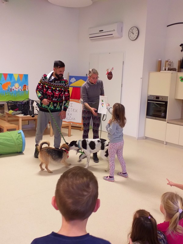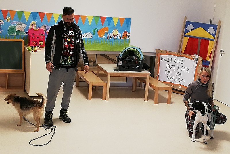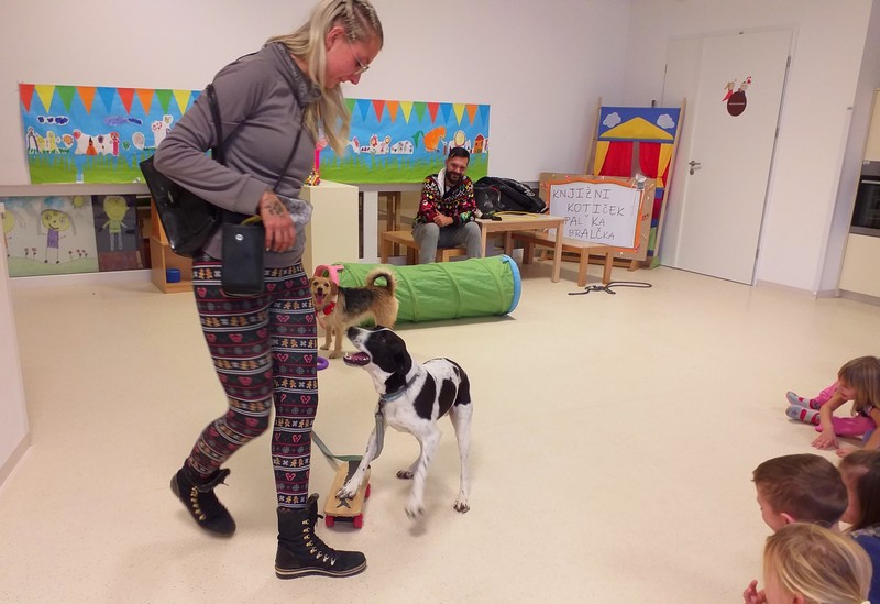 Prijazna kužka sta nadela nasmehe na otroške obraze, prikazala nekaj pasjih trikov, se pustila čohljati in zasluženo požela močan aplavz.
