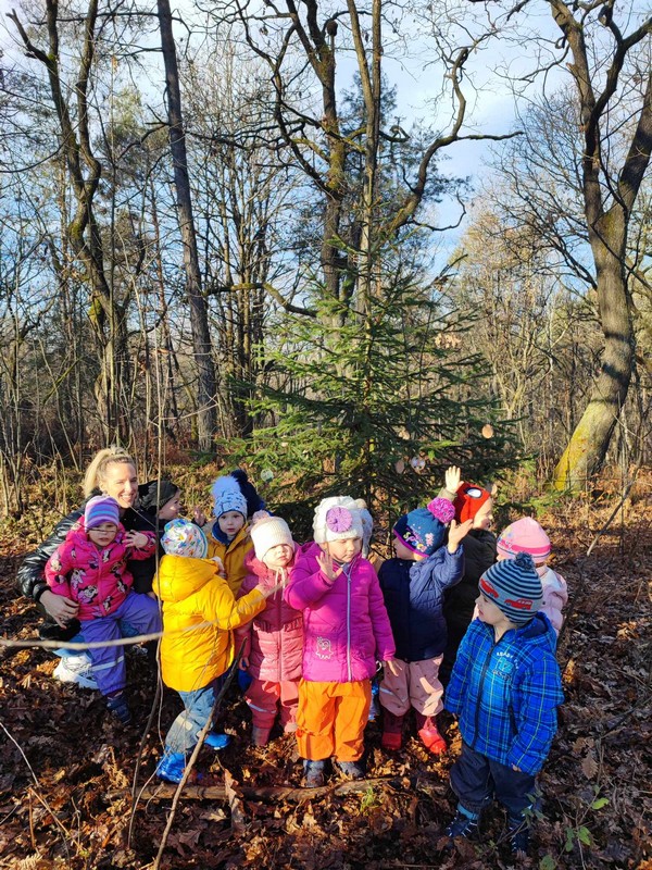Ustvarili smo našo tradicijo in v samem srcu Banovega gozda poiskali smreko, katero smo kasneje okrasili z lesenimi okraski in si tako pričarali čaroben gozd. Okoli prav posebne smreke smo tudi zapeli in zaplesali vsem dobro znano pesem o smrečici.