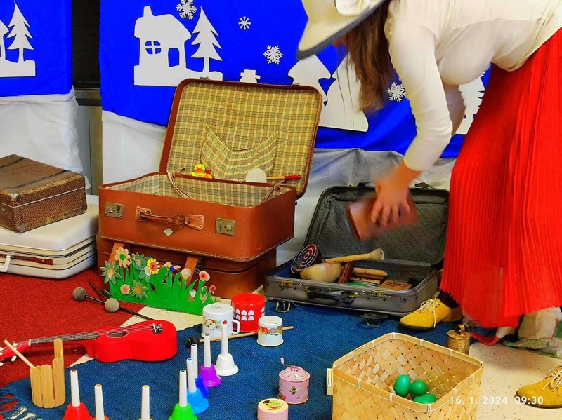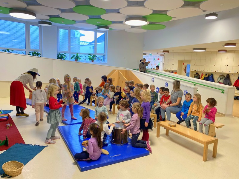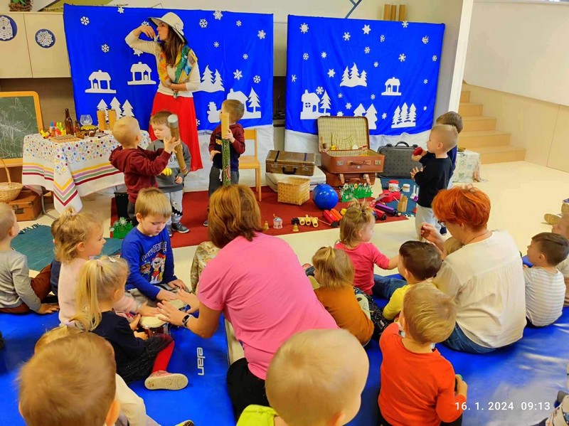V našem vrtcu smo imeli glasbeno predstavo, kjer je gospa Matej Fi skozi igro predstavila izvirna glasbila in zvočila, zapela različne ljudske in avtorske pesmi ter nam pripovedovala zanimive zgodbe ter dogodivščine. Vse to je prinesla z vseh vetrov, s svojih potovanj in druženj po različnih delih Slovenije in deželah sveta.