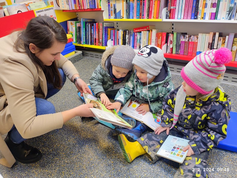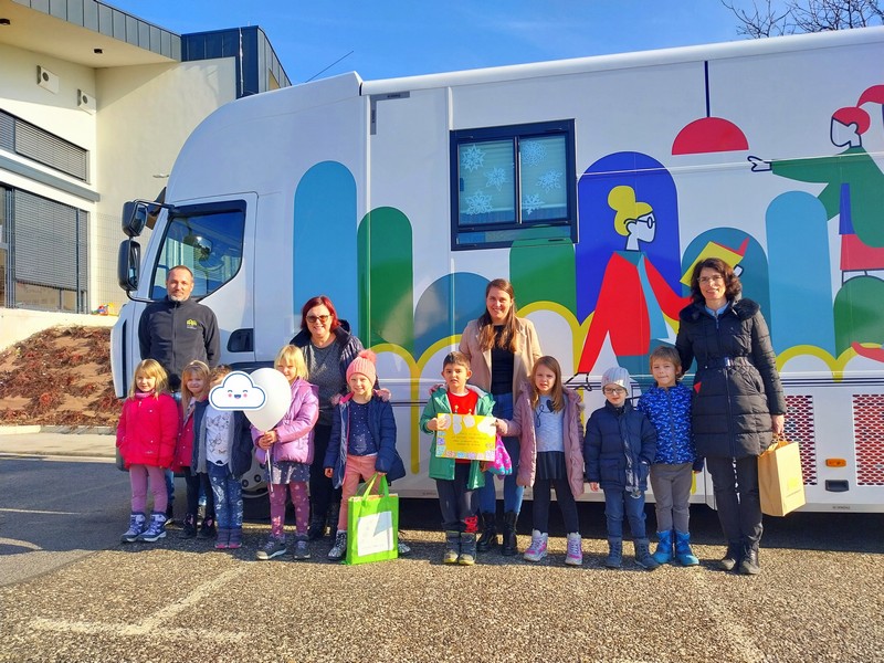 Bibliobus z imenom Bralko je v petek, 2. 2. 2024, postal pred vrtcem Ringaraja v Artičah.