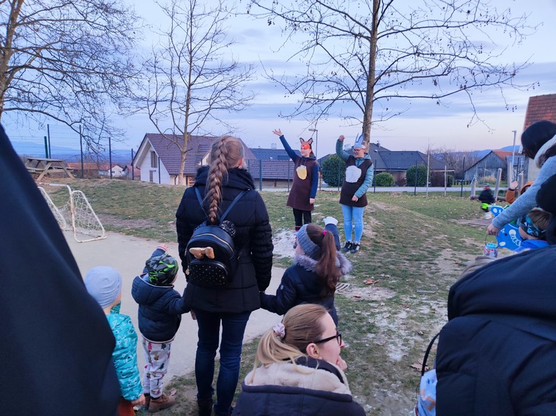 Želela sta z nami deliti novico, da sta v gozdu in ob gozdni poti že videla in zavonjala znanilce pomladi. Dobili smo nalogo, naj pozorno napnemo oči in prižgemo naša svetila.