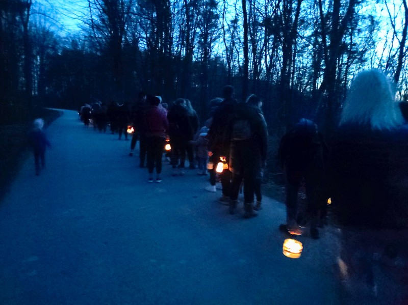Vendar to ne bi bilo nič posebnega, če ne bi bila to množica ljudi, ki si je svetila z naglavnimi lučkami, baterijskimi svetilkami, predvsem pa z lučkami iz kozarca s svečko, ki smo si jih naredili v čarobnem decembrskem času.