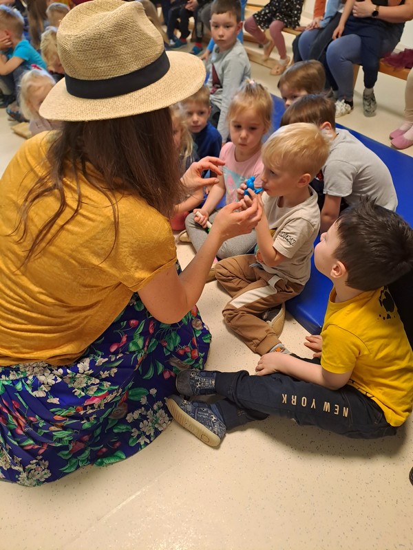 Naši prsti so oživeli, dlani so postali pajki, stopala čmrlji,... in tako smo skupaj ustvarili pravi žužnjavi orkester.