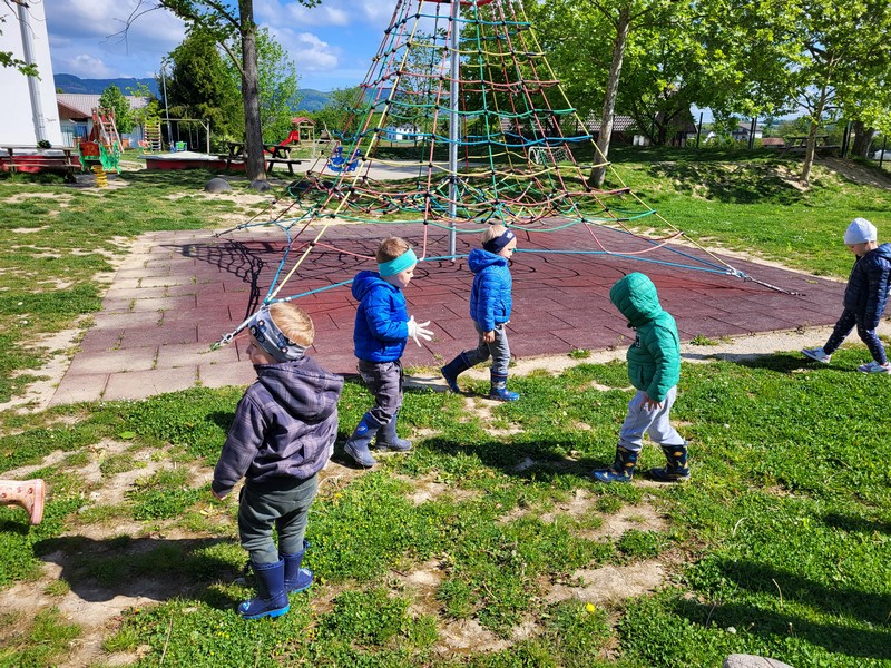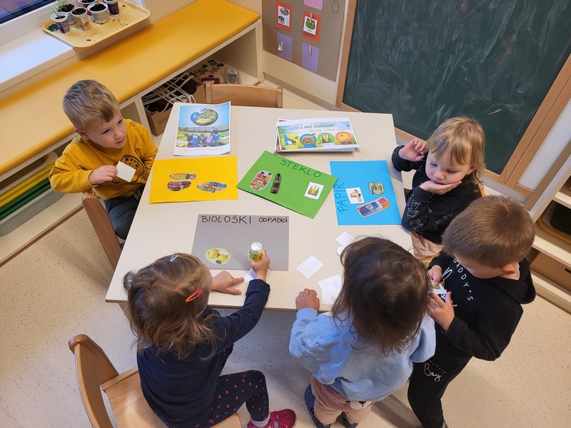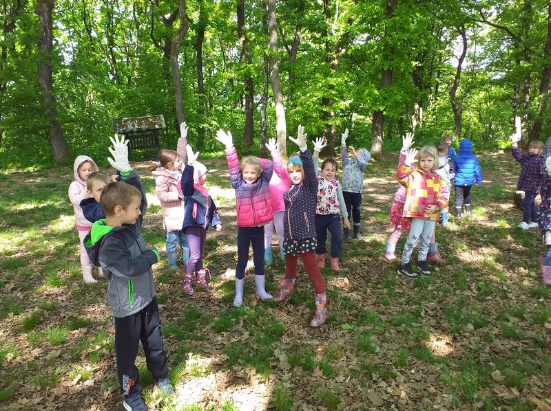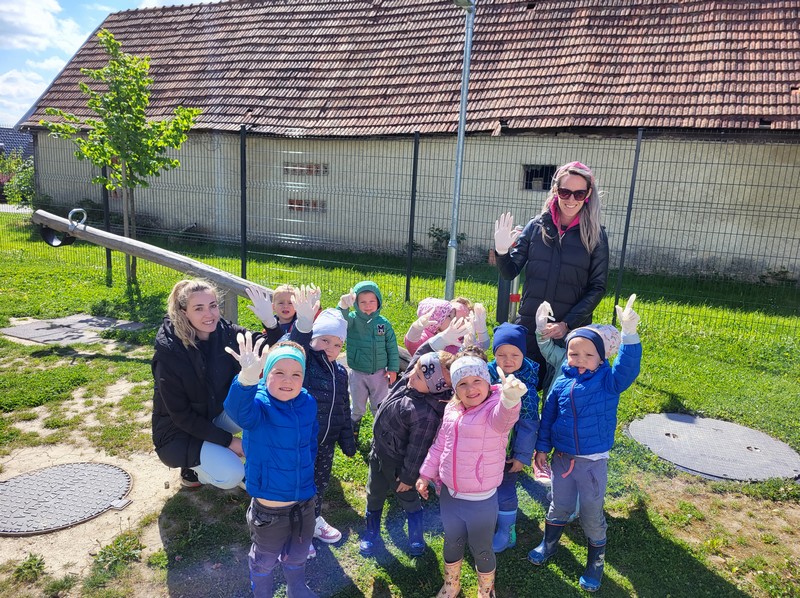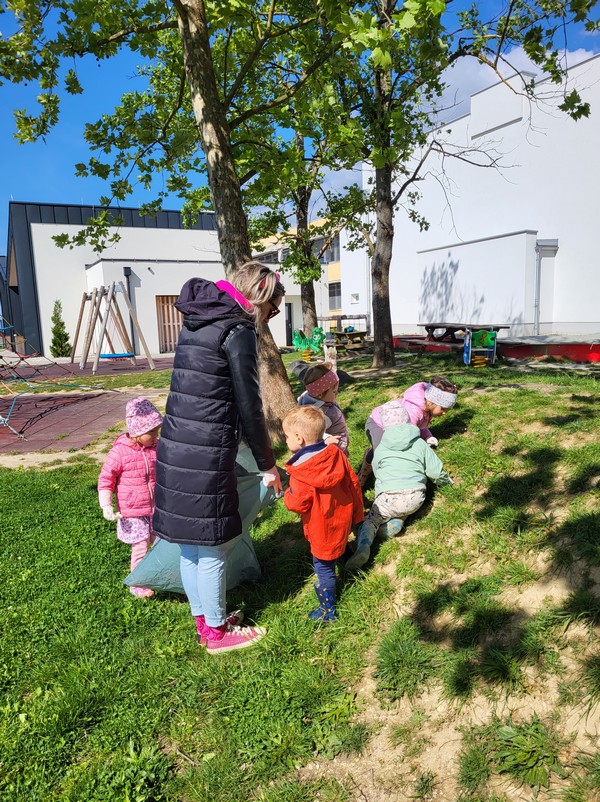 Zato smo v našem vrtcu, kot že leta prej stopili skupaj, zavihali rokave, si nadeli rokavice, s sabo vzeli vreče za smeti in odšli očistit okolico našega vrtca, travnato igrišče pri župnišču in naš preljubi Banov gozd.