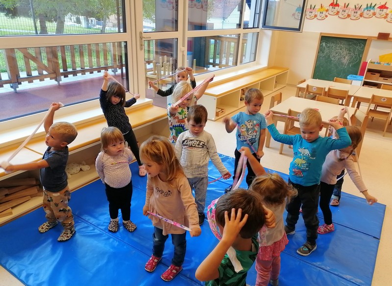 Zelo radi zaplešemo ob ritmu glasbe, pojemo ob kitari, razgibavamo naše telo, se igramo razne socialne igre, predvsem pa se radi prosto igramo.
