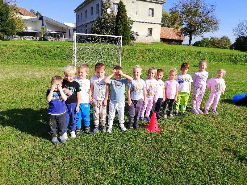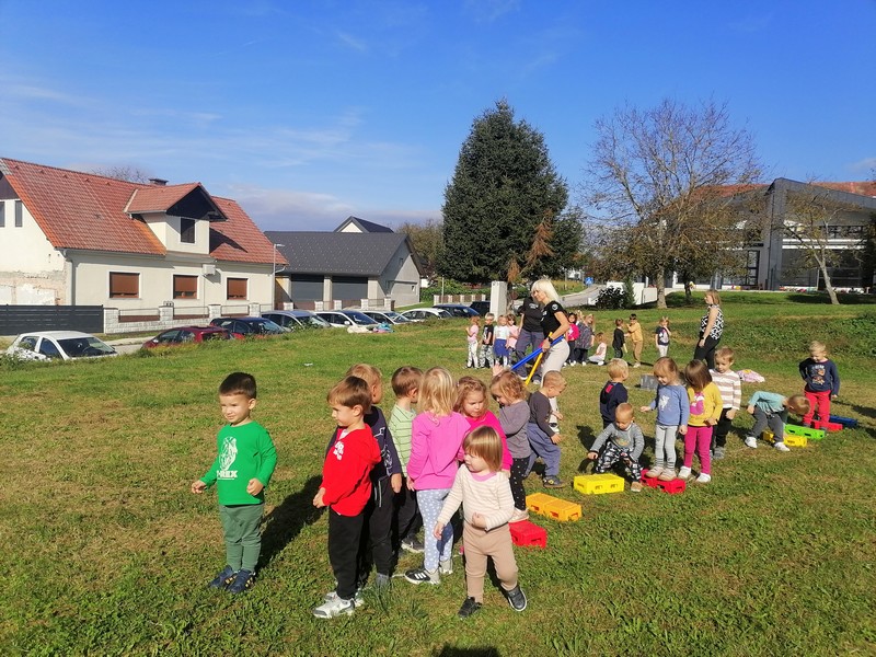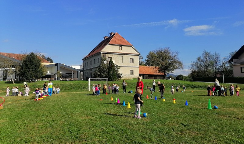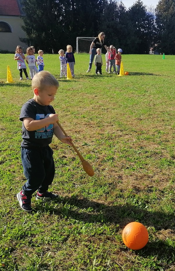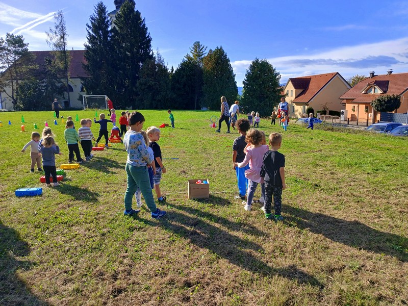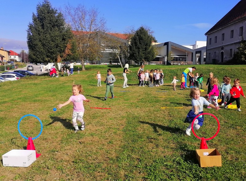 Preizkusili smo se tudi v športnih, štafetnih igrah na travnatem igrišču, najmlajši vrtičkarji pa so se podali do Banove hoste in tam urili svoje gibalne sposobnosti in raziskovali gozd v jesenski obleki.