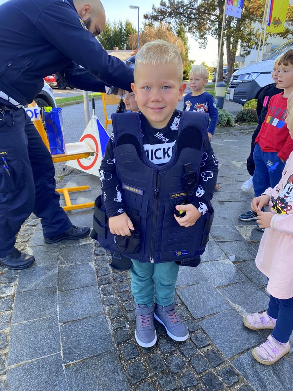 Pri opravljanju nalog nosijo predpisano uniformo, imajo posebno opremo, ki nam jo je pokazal. Seveda so ga otroci poslušali in mu postavili tudi kakšno vprašanje. Najbolj jih je zanimalo ali je že ulovil kakšnega tatu, ki krade. S seboj je imel tudi čelado, ki je privabila otroške poglede in neprebojni jopič.